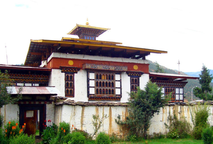 druk choeding lhakhang: also known as tshongdoe naktshang , it was built in 1525 by ngawang chhogyel (1465–1540), one of the prince-abbots of ralung in tibet and an ancestor of the zhabdrung ngawang namgyal. the main statue is of a seated jampa (future buddha). also present is the local protector gyenyen, surrounded by a fearsome collection of old bhutanese shields and weapons.